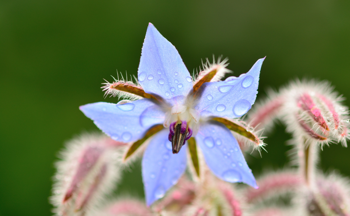 Pick borage flowers before they are fully open. The flowers are edible and make colorful additions to salads.